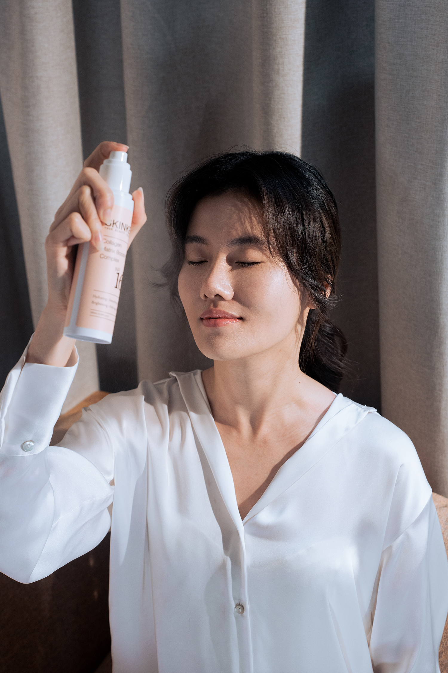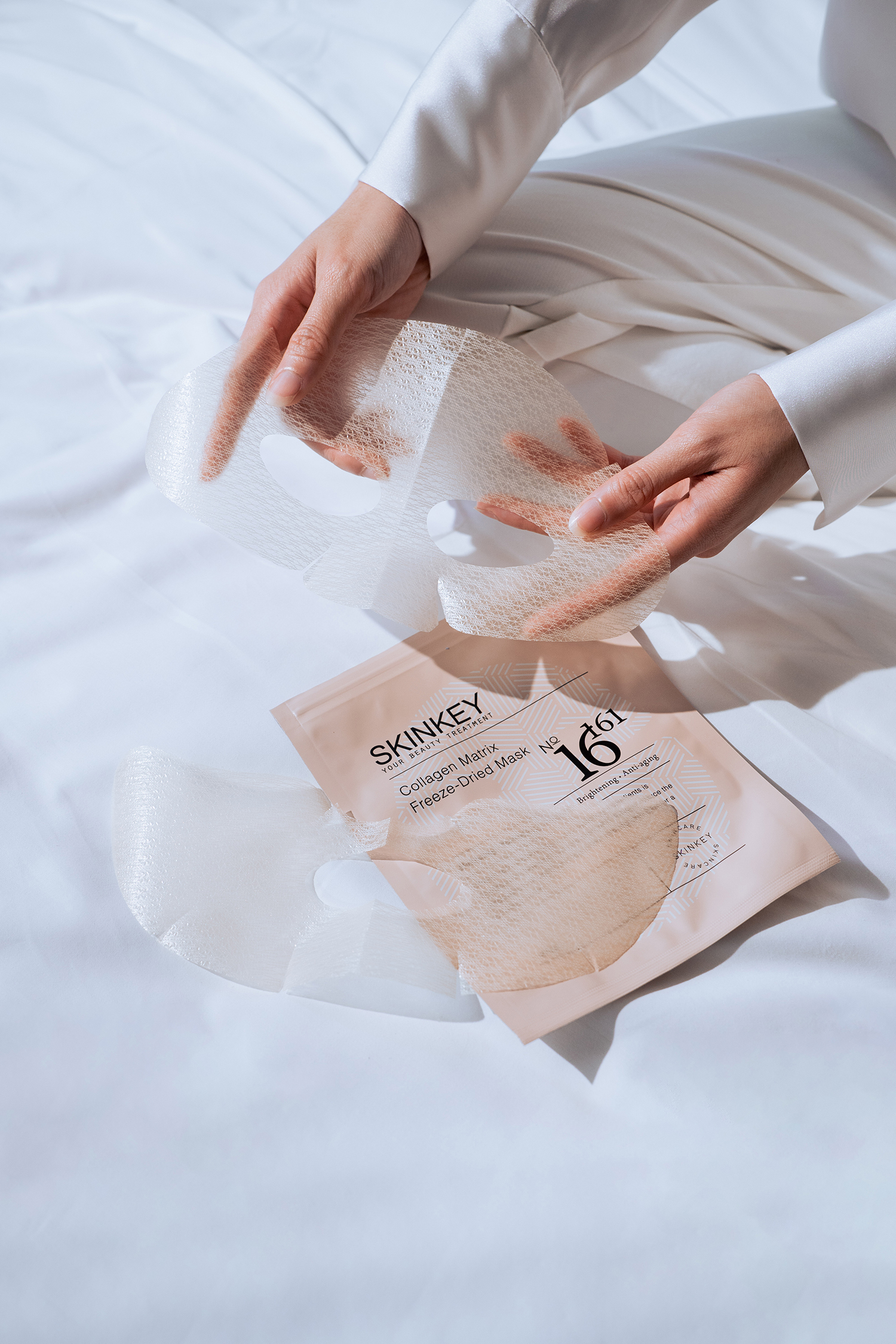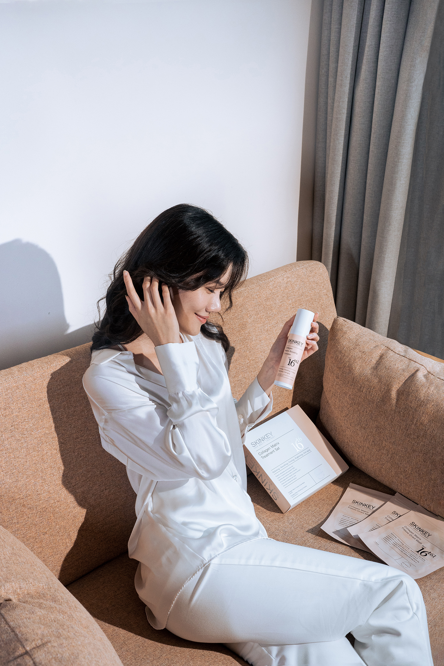 想要發揮最大功效的話,必須同時使用 SKINKEY「隱形雙膠原凍乾網膜」及「注水煥膚精華」,以協同作用回復肌膚飽滿彈性,並喚醒暗沉及疲倦肌。就算平時有注意肌膚膠原的重要性,但都很難避免其流失。而面膜加上精華則有著「納豆膠原蛋白+水解膠原蛋白」雙重膠原,品牌的包覆技術更能封存 100% 活性膠原因子,為肌膚注入滿滿的膠原,就算是素顏,看起來都充滿細膩彈滑的感覺。
