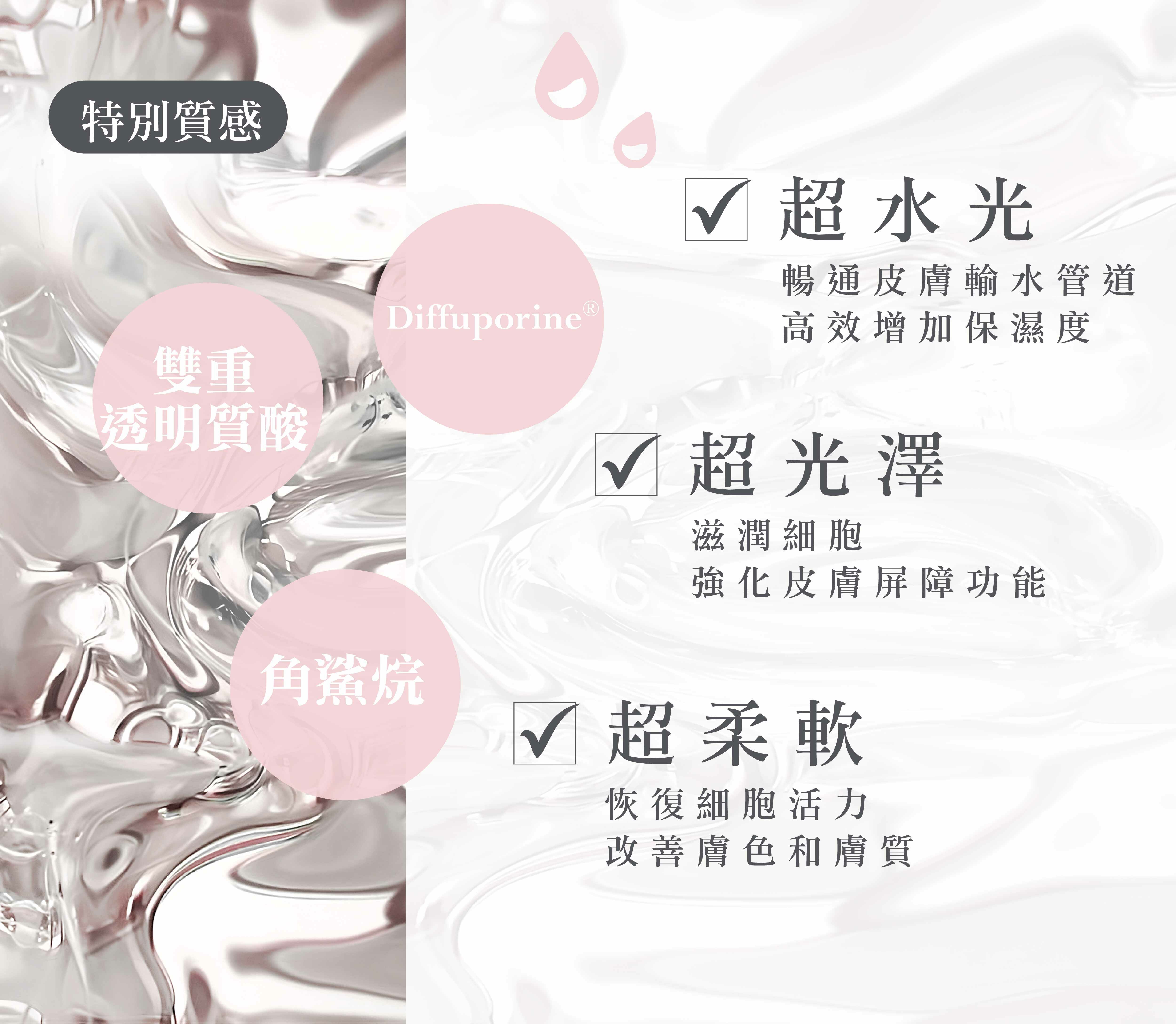 - 暢通皮膚輸水管道,高效增加保濕度